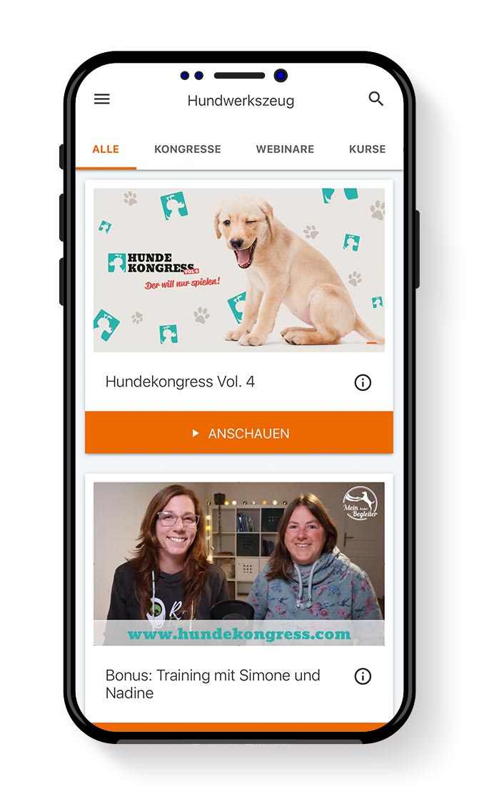Mit der Hundwerkszeug App kannst du dir unsere Webinare und Hundkongresse komfortabel anschauen.